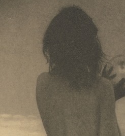 The shoulder blade catches soft pictorialist light, the skin rendered in tonal gradations that feel almost painted. Hair falls against the upper back — that meeting of textures, the vulnerability of exposed nape and shoulder, is where the image begins to breathe.