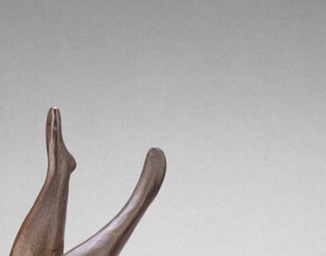 The muscular shoulders and bent arms bear the entire inverted figure — strength made intimate. The head is nearly hidden, subsumed by the pose, lending the figure an anonymity that universalizes its sensuality.