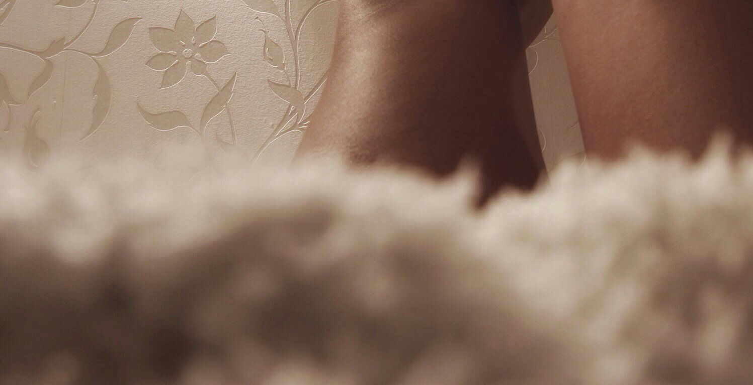 The fur blanket meeting bare skin at the lower edge — the softness of the textile against the warmth of the body disappearing into it. What lies beyond the frame is left entirely to imagination. The fur functions as both concealment and invitation, the threshold where the visible yields to the implied.