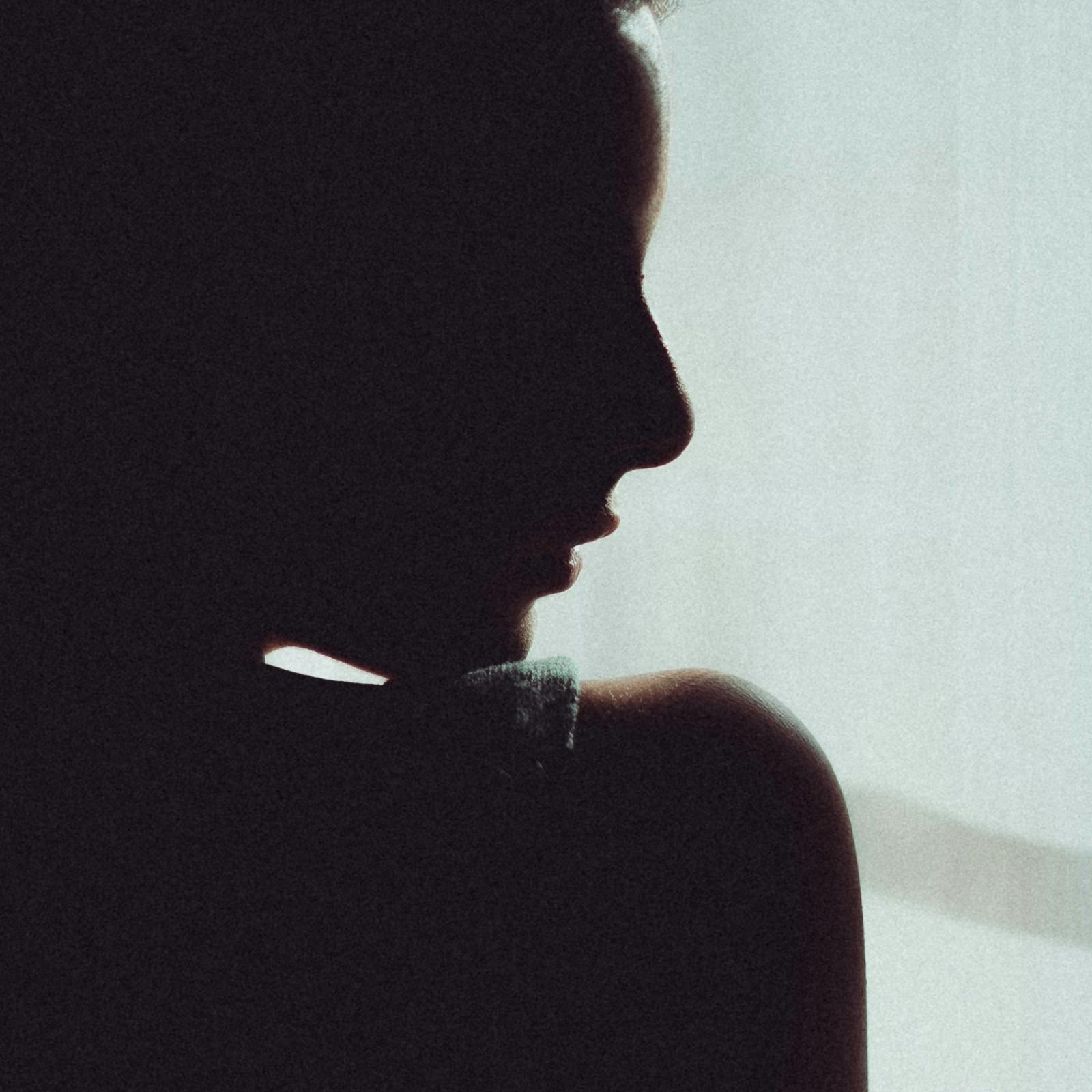 The bare shoulder dissolving into near-total silhouette, with the faintest rim-light tracing the slope from neck to deltoid. The thin strap catching a sliver of illumination implies undress without showing it — fabric barely present, skin barely visible, everything suggested.