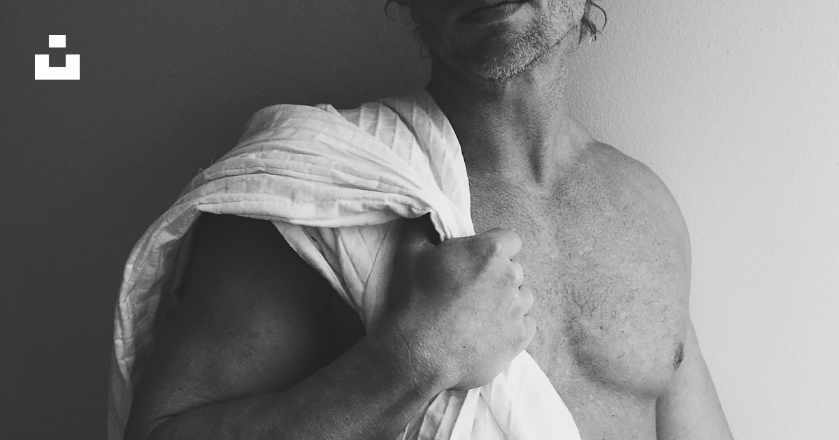 man in white towel in grayscale photography