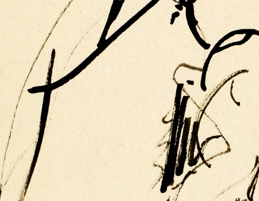 Where the torso narrows and the hip begins to swell — the artist's brush moves with particular authority here, the single calligraphic line describing the cinch of waist into the fullness of the body. This is where gravity and desire converge in the drawing.