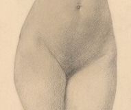 The navel and the soft modeling of the abdomen — the pencil work here is the most tender in the whole drawing, capturing the breathing surface of a living body, neither taut nor slack but simply alive