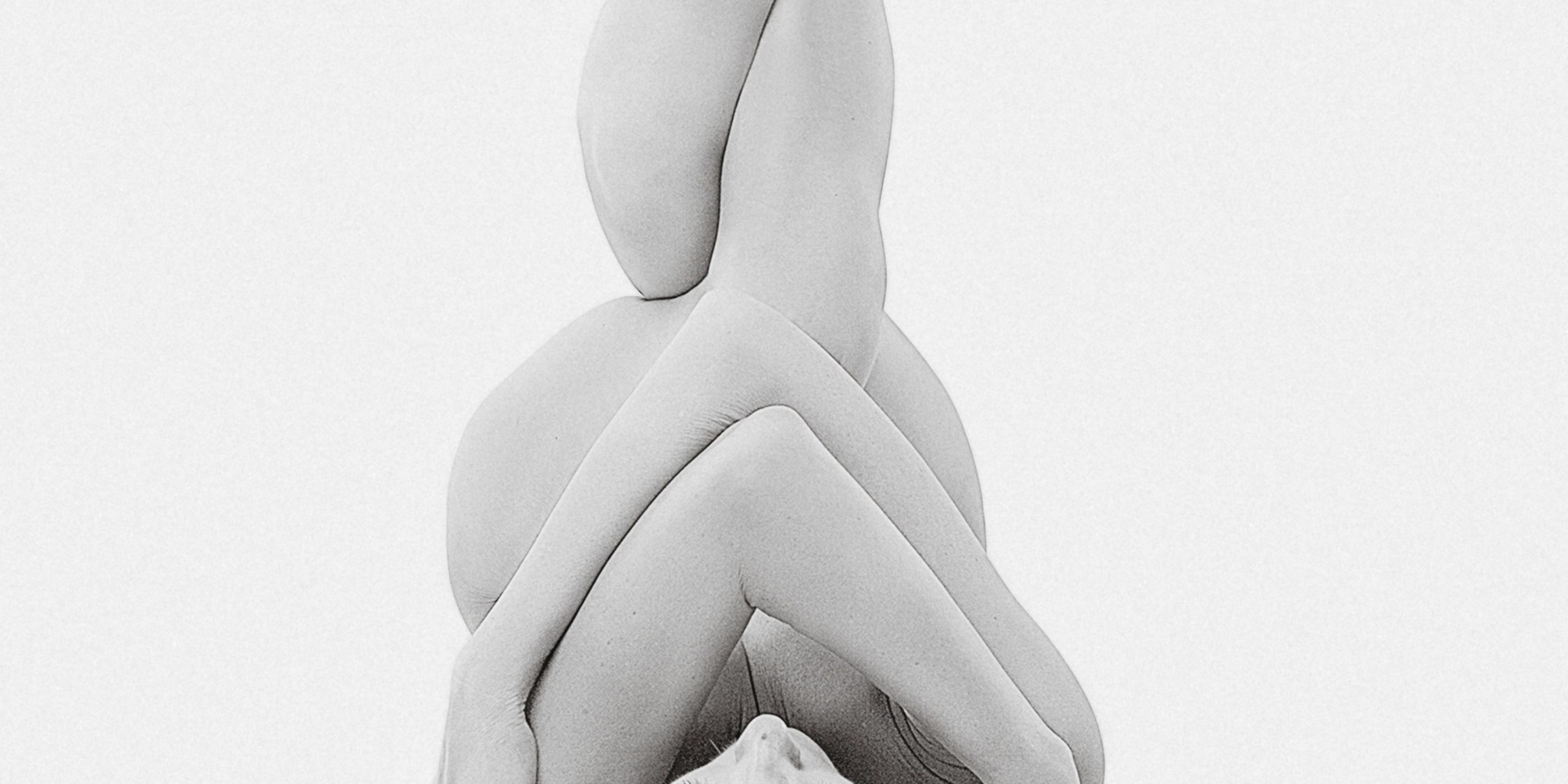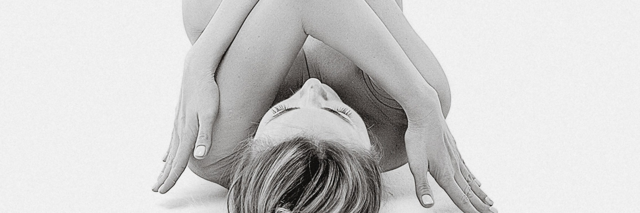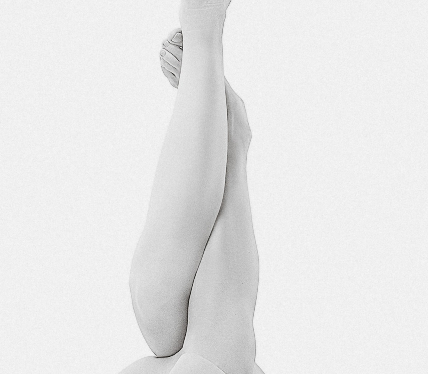 The crossed arms and delicate wrists form a protective lattice across the chest — the gesture of concealment that paradoxically draws attention to what is shielded, the inner wrists exposed and tender