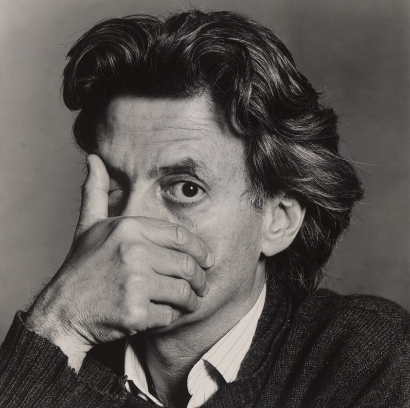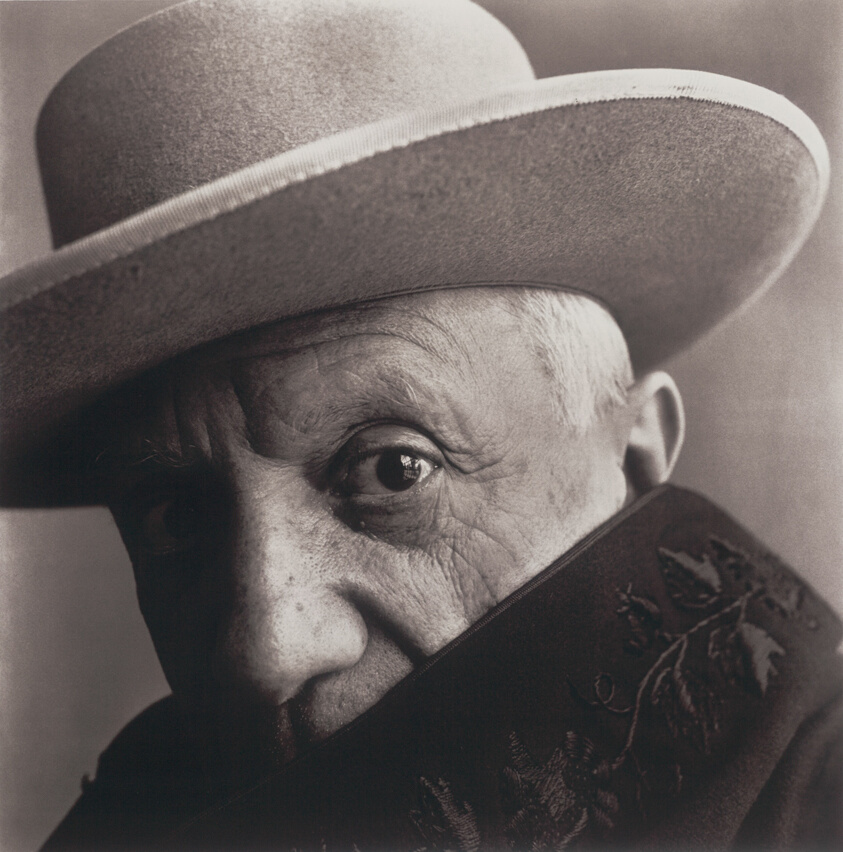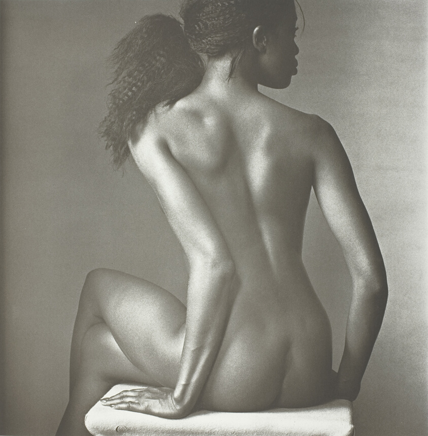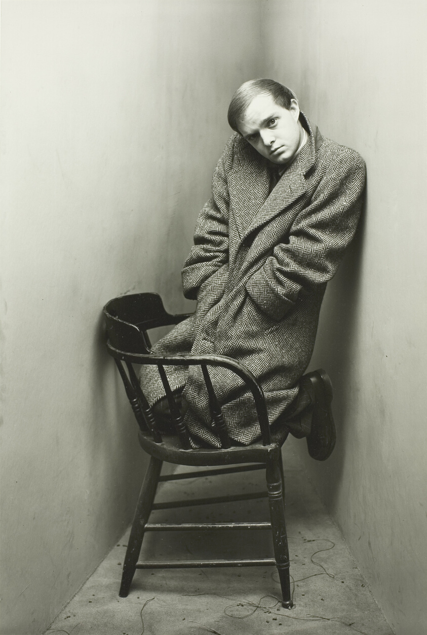 Seated, still deep shadow, bright edge, eyes direct silver and grain