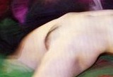 The narrowing waist — that geographical compression between ribs and pelvis — draws the eye like a gravity well. The skin here is most luminous against the saturated magenta and emerald, the body at its most vulnerable and calligraphic