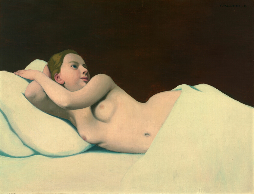 Post-impressionist oil painting of a standing nude male figure in a studio interior