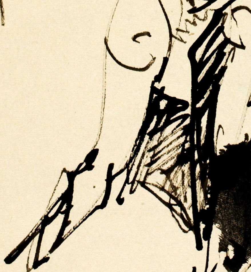 The legs dissolve into increasingly abstract strokes and a pool of dark ink at the base — the body becoming notation, becoming shadow. The resolution of form into gesture and darkness creates a sense of the figure receding, departing, the encounter ending.