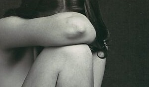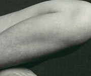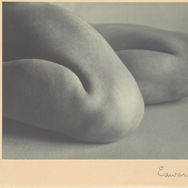Abstracted nude form, knees and hips rendered as sculptural curves in soft monochrome light