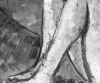 The drawn-up leg creates a monumental diagonal, the bent knee catching light — the posture of ease and self-possession, the body arranging itself without audience
