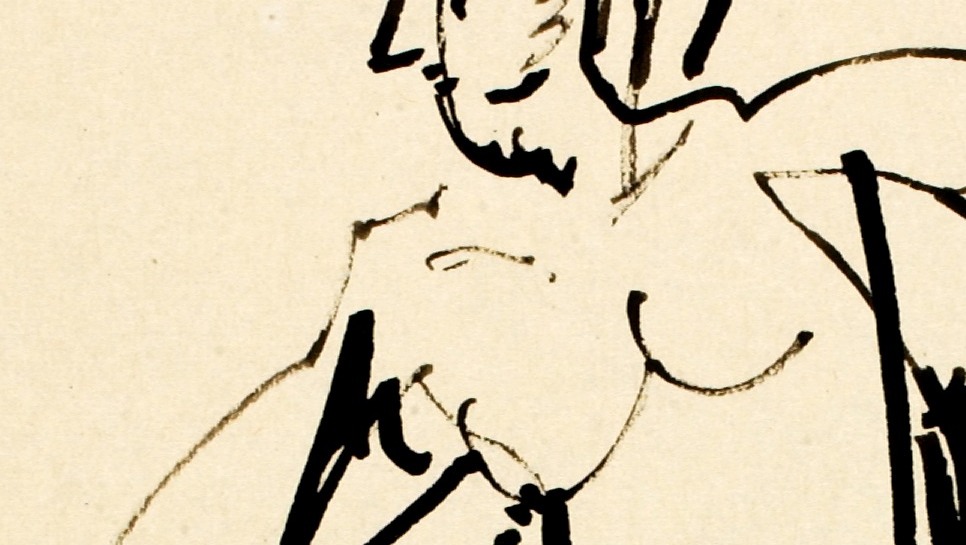 The sweep from shoulder to shoulder, the architecture of the upper chest — the ink captures the structural elegance of the clavicle and the soft weight beneath it with gestural confidence. The line thins and thickens like breath itself.