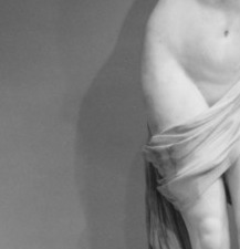 The softness of the abdomen rendered in hard stone — that paradox is the genius of neoclassical marble. The navel, the gentle swell below, the faint suggestion of breath held in carved flesh. This is where tenderness resides in stone.